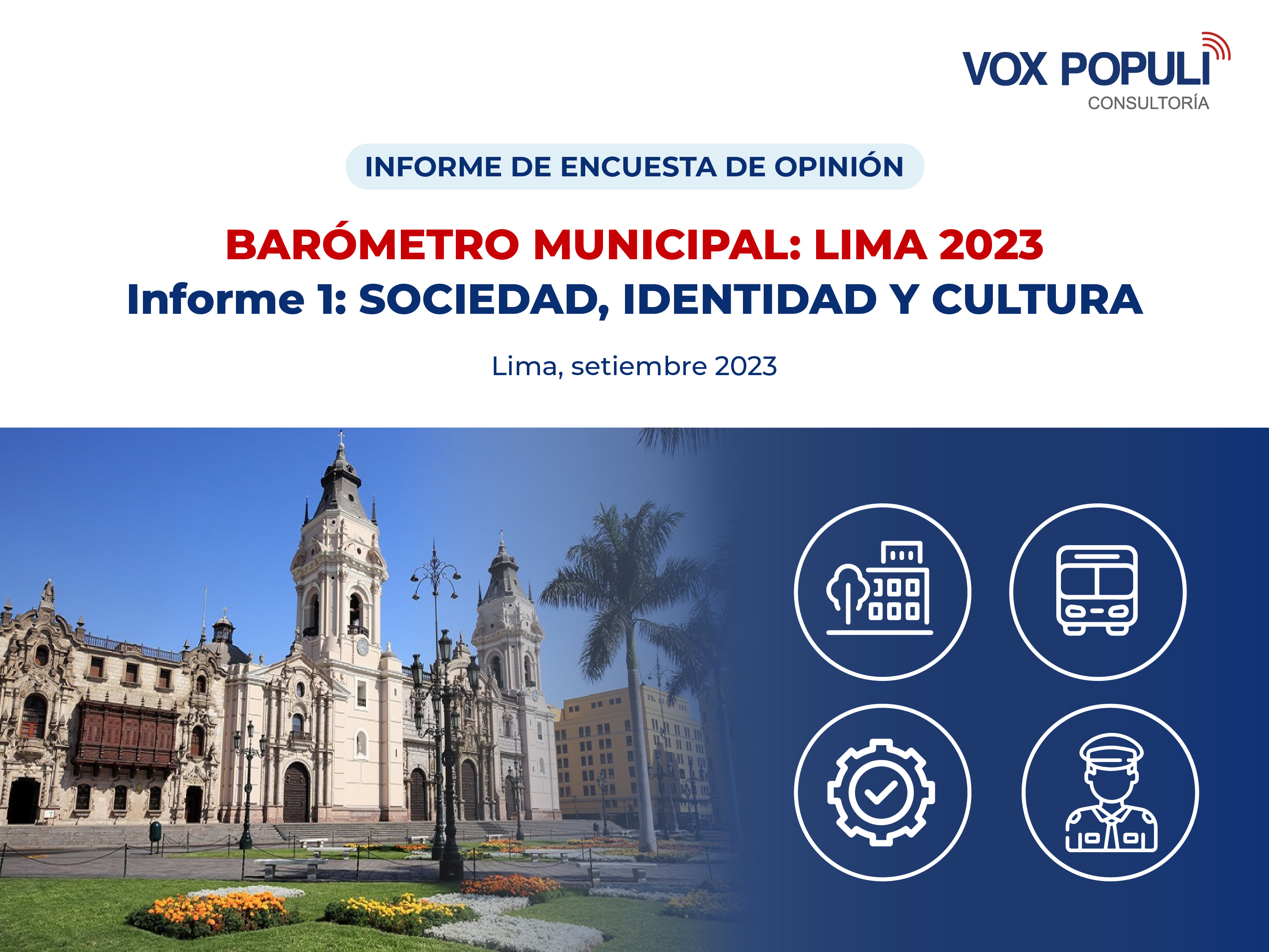 Una mirada de Lima por los limeños. Presentamos el primer informe de la encuesta «Barómetro Municipal Lima 2023: Sociedad, Identidad y Cultura», realizado por Vox Populi Consultoría.