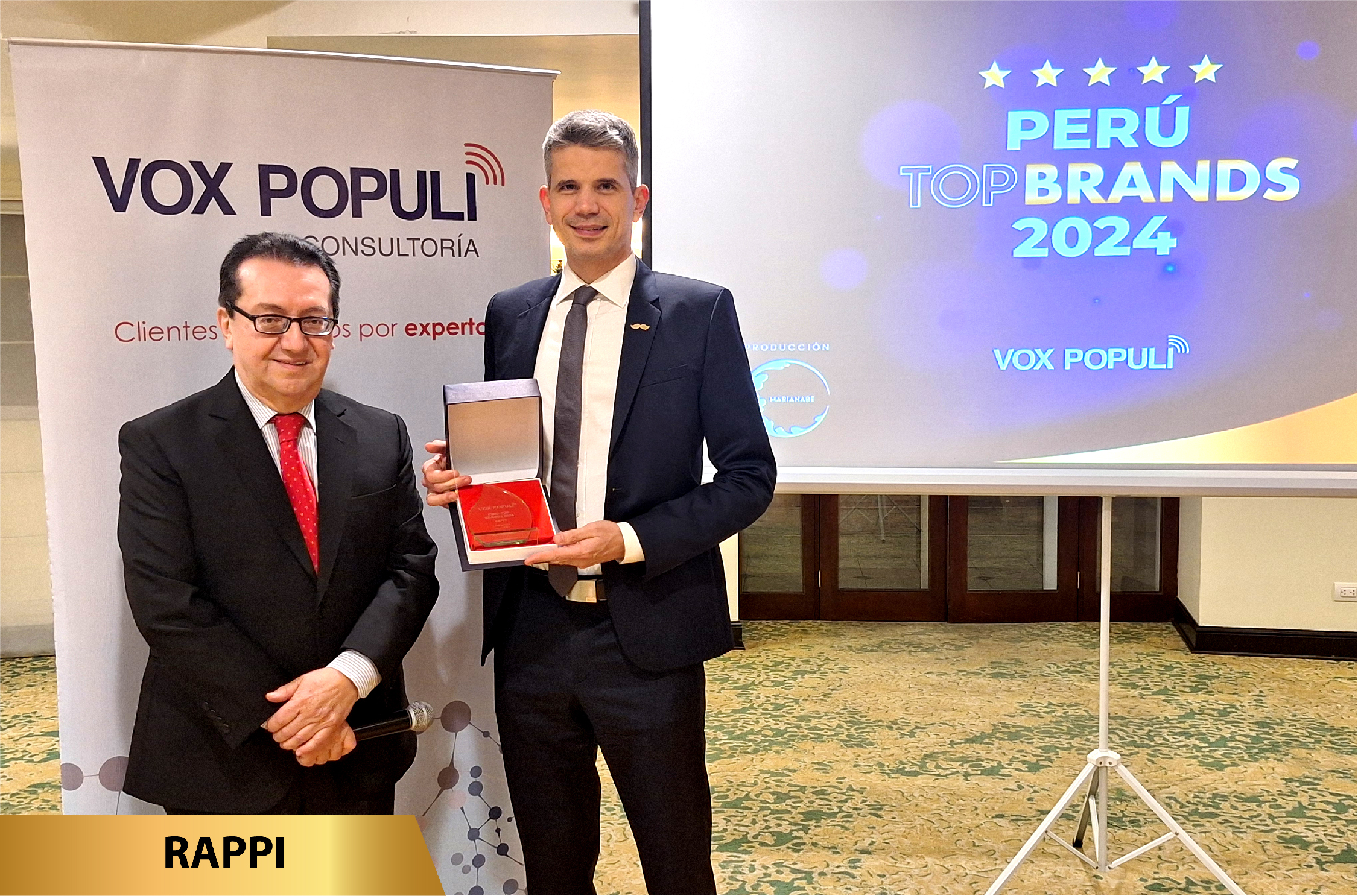 Vox Populi Rappi es la mejor marca en la categoría delivery by voxpopuliempresarial7 octubre, 2024 Comments 0 Rappi es la mejor marca en la categoría delivery. Imágenes de la gala de premiación a las mejores marcas según «Perú Top Brands 2024» (Encuesta de Vox Populi). «Perú Top Brands 2024»: https://voxpopuli.pe/peru-top-brands-2024/ Perú Top Brands 2024 Compártelo: Share on X (Se abre en una ventana nueva) X Share on Facebook (Se abre en una ventana nueva) Facebook Share on LinkedIn (Se abre en una ventana nueva) LinkedIn Share on WhatsApp (Se abre en una ventana nueva) WhatsApp Más Share on Telegram (Se abre en una ventana nueva) Telegram Me gusta:Me gusta Cargando... 0 comments on “Rappi es la mejor marca en la categoría delivery” Deja un comentarioCancelar respuesta Navegación de entradas Previous Post Next Post
